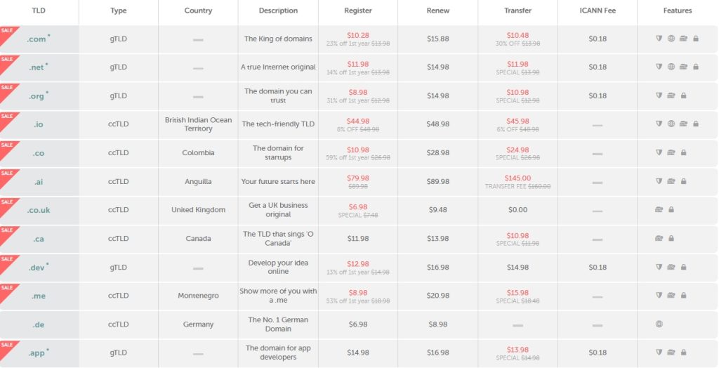 Namecheap拥有丰富的域名资源,包括.com、.net、.org等常用顶级域名,以及国家和地区代码域名。此外还提供一些特色域名,如.co、.io等,这些域名具有独特性和创新性,能够满足用户的多样化需求。